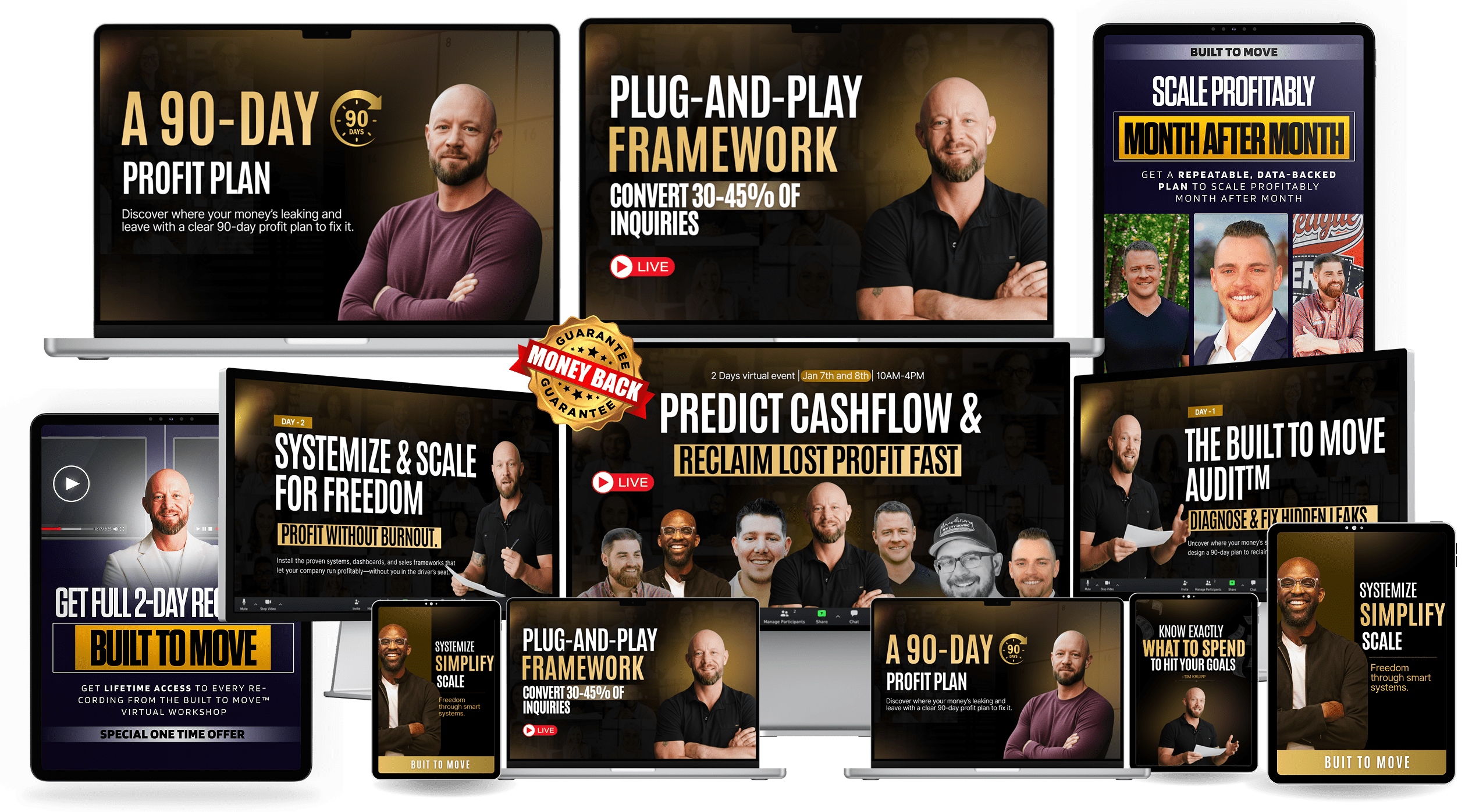 This isn’t a seminar. This is a business audit. Built To Move™ is a workshop-style event designed to diagnose exactly what’s holding your company back, and give you a real plan to fix it. You’ll walk away with frameworks, numbers, and next steps not motivational fluff.